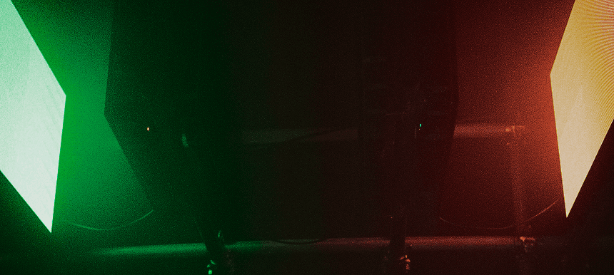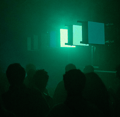 Created for the third Migarden event at NAMA, the work staged a conceptual play of symmetry and opposition. Eight LED wall tiles, arranged front and back in a linear sequence, displayed green on one side and red on the other, shifting the space’s atmosphere depending on the viewer’s position. This chromatic duality invited movement across the room, while animations synchronized with the audio flowed along the composition, translating musical variation into a dynamic dialogue between sight and sound. Within this mirrored setup, the installation transformed perception into an active, spatial experience.