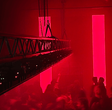 The installation consisted of a 22 meters long strip of LED wall covering the entire back wall and extending along the sides of the two perpendicular walls. This installation created a continuous visual frame that enveloped the space, transforming the dance event into an immersive experience.