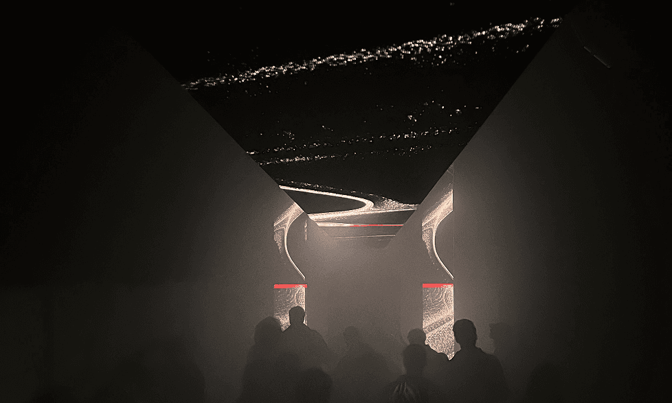 This chromatic duality invited movement across the room, while animations synchronized with the audio flowed along the composition, translating musical variation into a dynamic dialogue between sight and sound. Within this mirrored setup, the installation transformed perception into an active, spatial experience.